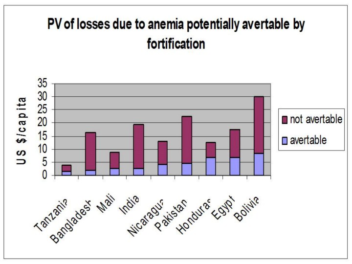 We will use the example of fortification of flour as an intervention. A study for Venezuela suggested that fortification would reduce – but not eliminate - anemia. The estimated effect was a 9 percentage point reduction in prevalence of anemia. |