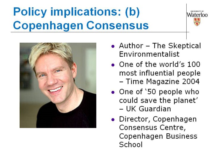 Bjorn Lomborg founded the “Copenhagen Consensus” which has occurred in 2004 and 2008 (and will occur again in 2012). See http://www.copenhagenconsensus.com