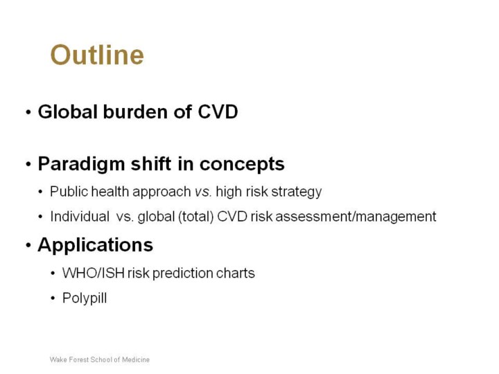 The objectives of this presentation are 1) To discuss how our current concepts of CVD prevention have evolved overtime, and 2) to discuss two applications of these current concepts |