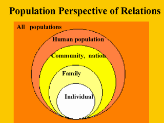 | Problem definition involves many different perspectives. The first perspective shown here, is to define and approach environmental health problems by focusing on the indicator of change. Here, either an individual or a population may show a change in their health. The change may be positive (beneficial by a gain in health quality, e.g. increased longevity) or it may be negative (adverse by a loss in health quality, e.g. decreased functionality). |
