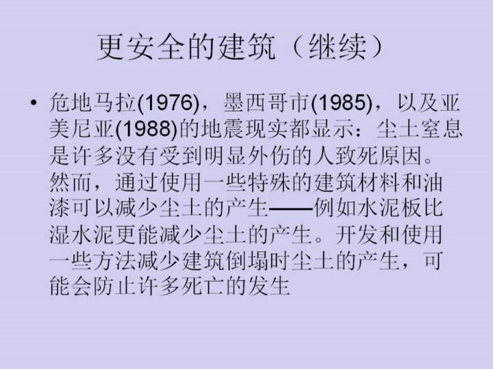 对已经存在的建筑进行重建(例如地基和墙壁增固)是相当昂贵的,一些房主可能没有足够的资金使得房屋建筑得达到最低稳固要求。因此,有必要设立一种法则,来选择性的重建那些高危险建筑。例如,对于那些没有加固的石建筑,Durkin 和Thiel的研究结果显示:在最近的加利福尼亚州地震中,许多人都是在试图逃跑时在这些建筑外受伤的。这些结果说明保护未加固的石建筑的逃生通道和在这些建筑的周围进行加固,有望使得伤害和死亡率有效的减少而且花钱不多。其它一些相对简单的可以减少严重伤害的修缮包括加固楼梯或浴室或建设一些安全走廊。 最后,加利福尼亚州的22000座高架桥中,有许多都处在危险状态中,一个大地震可能就可能对其造成巨大的损伤。在像加利福尼亚州这样地震高发区的任何一个减少地震灾害的计划,都应该在重建交通设施时得到优先考虑。 |