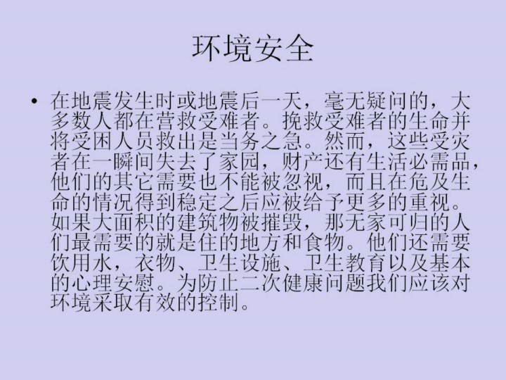对传染病的监控 灾后关于传染病的谣传和恐慌会笼罩灾区,而地震也不例外。其他国家地震后往往不会爆发传染病,美国也没有。然而,卫生署应该做到提供卫生方面的预防措施并且对于谣言和不准确的信息能够及时辟谣。他们应当建立符合当地情况的疾病监控制度,并定期向应灾部门定期汇报监测结果。任何不正常的高发的疾病都应该受到严密调查和监控。灾后无根据的大规模注射疫苗并不恰当。 |