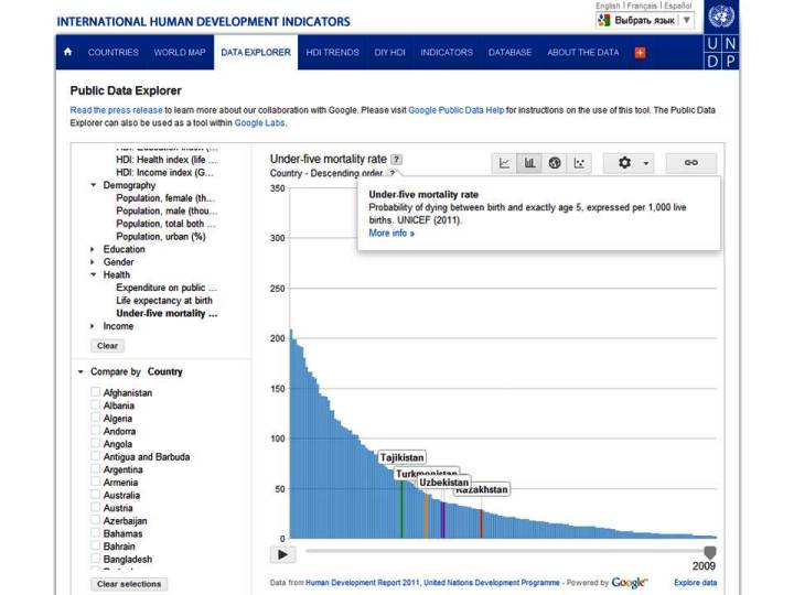 Probability of dying between birth and exactly age 5, expressed per 1,000 live births. UNICEF (2011).