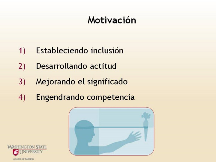 • Desarrollando actitud: creación de una disposición favorable hacia la experiencia de aprendizaje a través de la relevancia personal y la elección • Mejorando el significado: la creación de experiencias desafiantes, reflexivos de aprendizaje que incluyen las perspectivas y valores de los alumnos • Perspectiva de género en competencias: creación de un entendimiento de que los alumnos son eficaces en el aprendizaje de algo que valoran Estas condiciones motivacionales trabajar en conjunto. Se producen juntos en el momento así como durante un período de tiempo. Los educadores deben planificar para establecer y coordinar las condiciones. Un buen lugar para comenzar es tener claro el propósito de la clase. (Wlodkowski, R. J. Enhancing Adult Motivation to Learn: A Comprehensive Guide for Teaching All Adults. (rev. ed.) San Francisco: Jossey-Bass, 1999). |