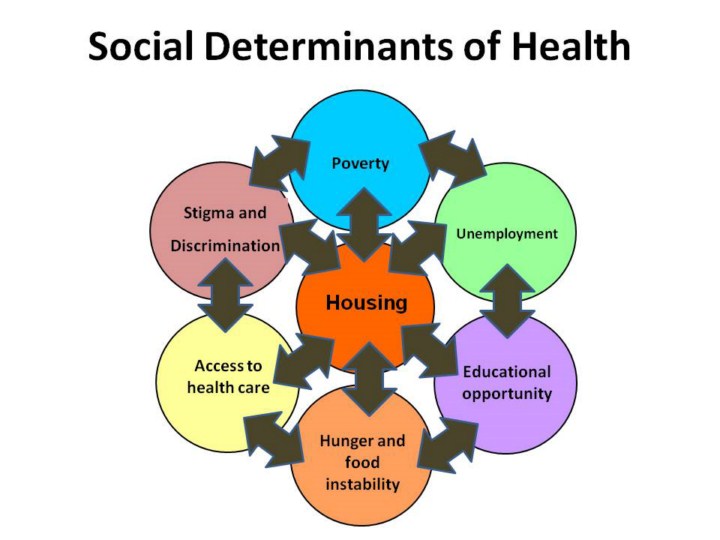 No one social determinant exists in isolation. These determinants are interrelated. They are connect and they all influence each other. Housing status affects, and is affected by, all of the determinants. |
