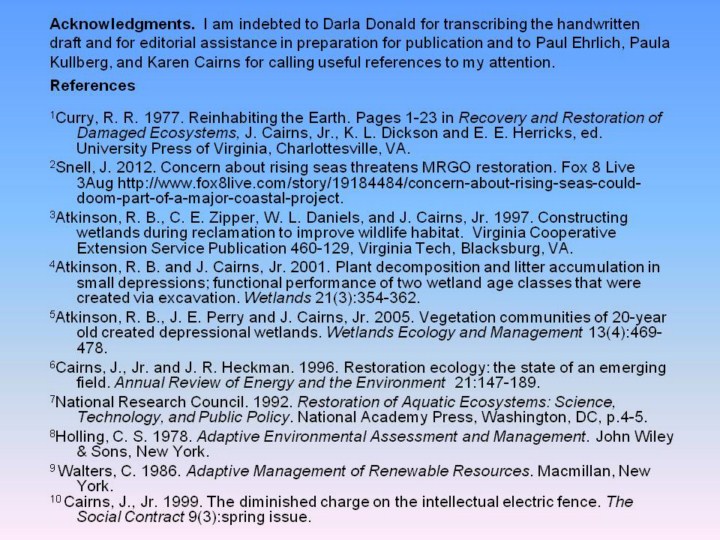 10 Cairns, J., Jr. 1999. The diminished charge on the intellectual electric