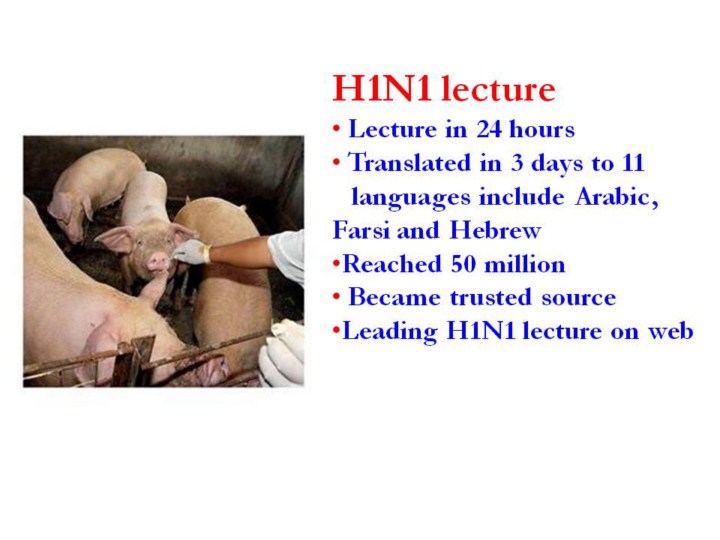 Our H1N1 lecture was the most significant viral lecture as we reached over 50 million people |