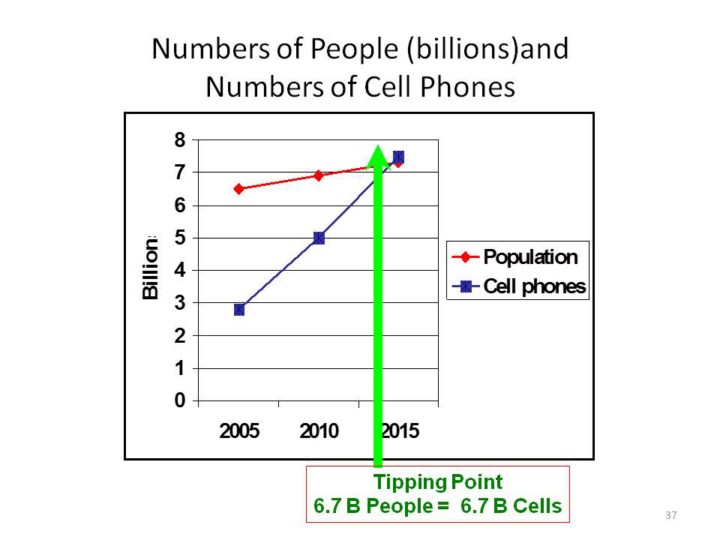 What is most remarkable is that in 2 years the number of cell phones will equal the number of people on earth. There has never been a technology taken up so rapidly. |