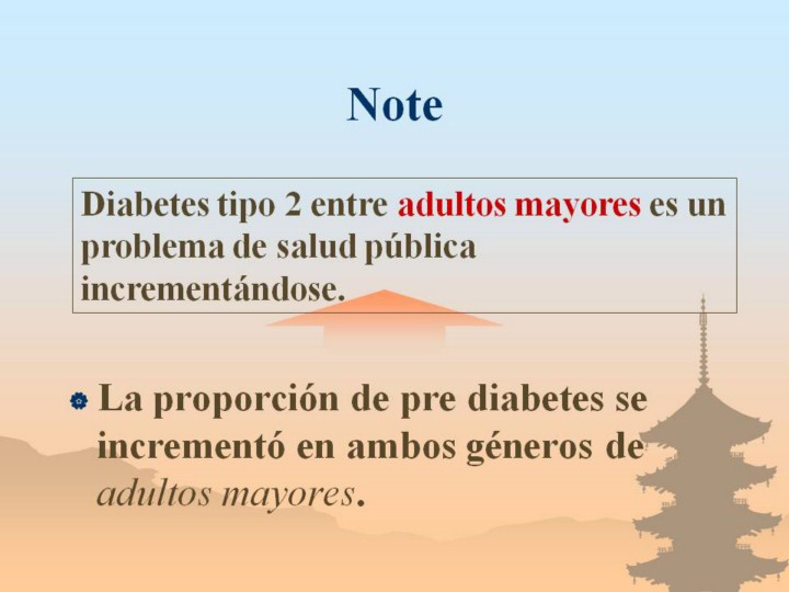 Prevalencia de pre diabetes se incrementó en adultos mayores de ambos géneros. Por lo tanto, diabetes entre adultos mayores es un problema de salud pública incrementándose.