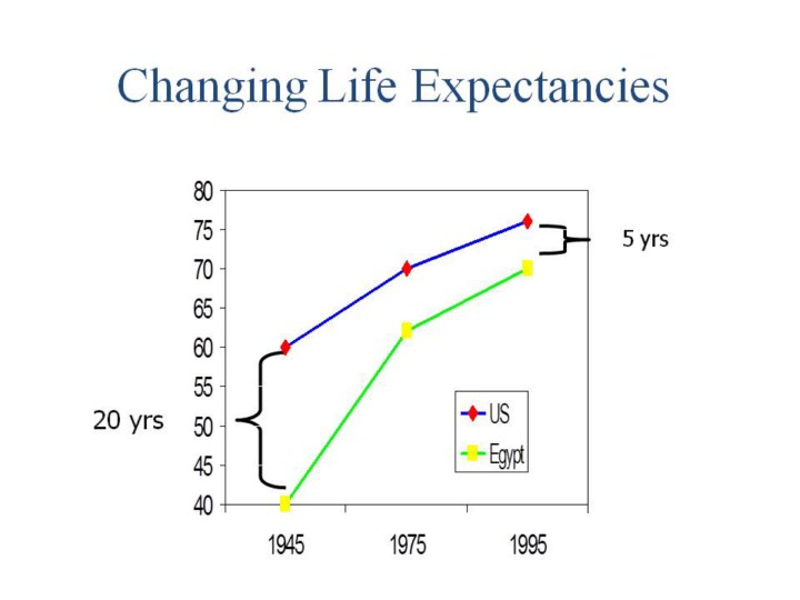 Using Egypt as an example, the rise in life expectancy has in fact been great than that in the US. |