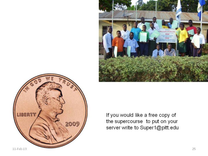 The supercourse is very cost effective. The teaching of one student from our lectures costs .06 cents each. With one penny we can teach all the students seen in this picture. |