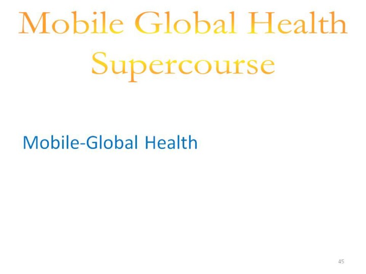 The concept of Mobile-global health is simple. For the first time we can reach billions of people world wide using cell phone, for pennies. |