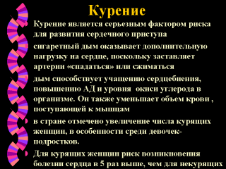 Табак является фактором риска более чем 25 болезней и они в структуре смертности составляют почти 75 %. Каждый второй курильщик,начавший курить в молодом возрасте, продолжает курить в течение всей жизни, умирает от вызванной табаком болезни.