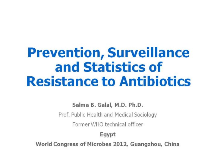 Prevention, Surveillance and Statistics of Resistance to Antibiotics lecture