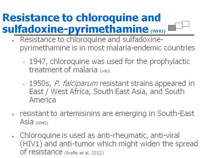 | Resistance to chloroquine, is widespread in 80% of the 92 countries where malaria continues to be a killer. The control of malaria has become difficult and has lead to the re-emergence of malaria in Africa and Asia. Also the resistance to newer anti-malarial drugs is widespread and growing. To contain the spread of malaria it is necessary to continuously supply new, effective and affordable drugs.