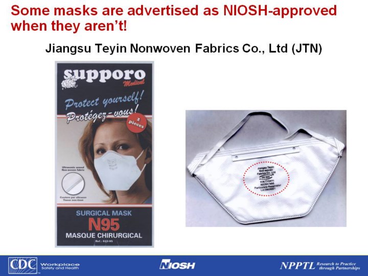 | This is an example where NIOSH had withdrawn the approval on a product, but came to find out that it was still be advertised and sold as a NIOSH-approved respirator.