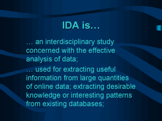 out information and knowledge for a particular data domain. See the following references: Methods Inf.Med. 40(5):362-364,2001; Artif.Intell.Med. 23(1):89-109,2001; Artif.Intell.Rev. 14(6):447-484,2000; Artif.Intell.Med. 20(1):37-57,2000; Artif.Intell.Med. 19(3):225-249,2000; Artif.Intell.Med. 19(1):53-74,2000; Med.Eng.Phys. 21(6-7):379-388,1999; Appl.Intell. 11(3):235-240,1999; AI Commun. 11(3-4):191-218,1998. |