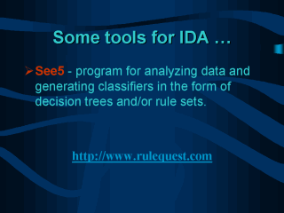 existence of a sample of cases where each case is described by: number of attributes, so called predictors, doesn’t matter if they are qualitative or quantitative values, and one class which is qualitative value (several discrete values). Problem is: Find ‘knowledge’ describing relationship between attributes and class, something like: IF (attribute1 is less-equal-greater-then v1 and …attributen is less-equal-greater-then vn) THEN (class is equal ci) |