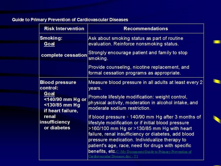 There have been developed a set of recommendations for the prevention of CHD (Supercourse) |