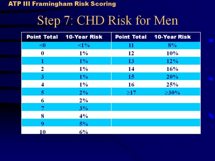Note: Determine the 10-year absolute risk for hard CHD (MI and coronary death) from point total.