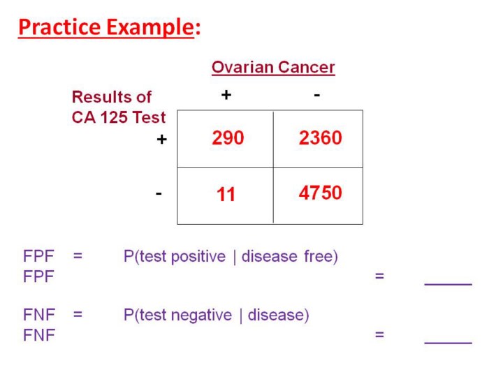 on the formulas provided and the data in the 2 x 2 table, calculate the