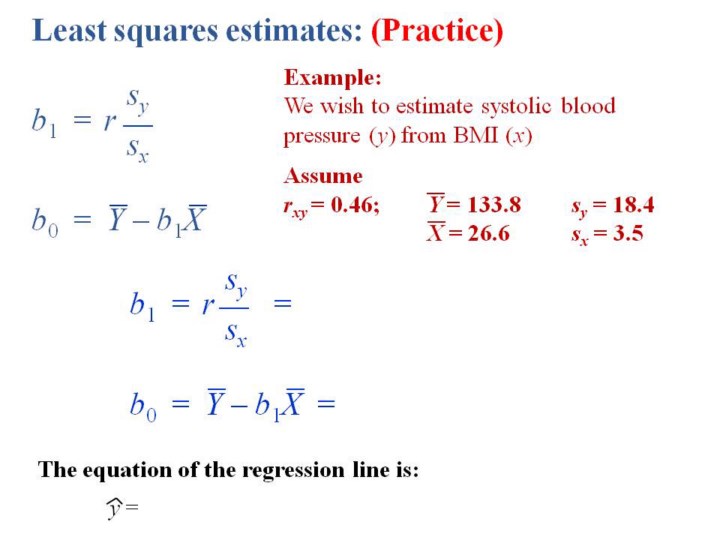 index (“x” variable) and systolic blood pressure (“y”) variable.