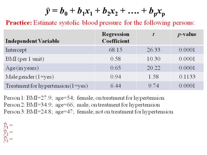 your handout, estimate systolic blood pressure (“y” variable) for the 3