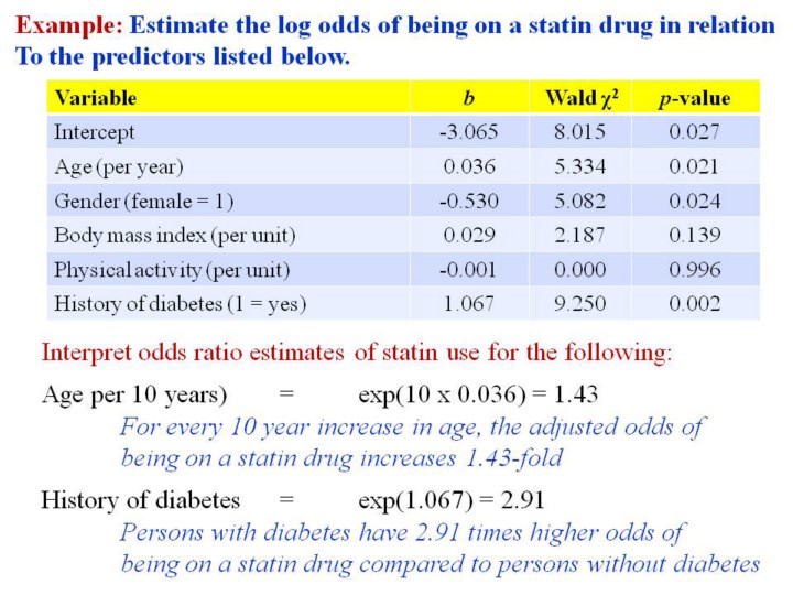example, the odds ratio estimate of 2.91 for persons with diabetes is