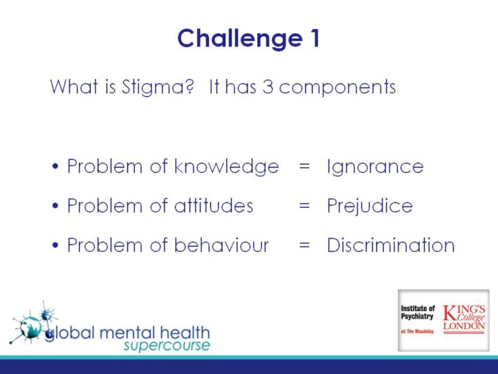 Ref: Thornicroft G, Rose D, Kassam A, Sartorius N. (2007) Stigma: ignorance, prejudice or discrimination? British Journal of Psychiatry, 190, 192-193. |