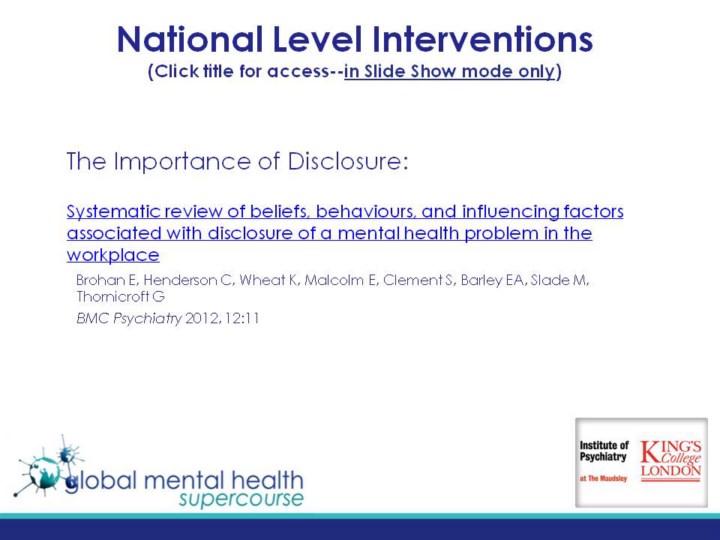 Systematic review of beliefs, behaviours, and influencing factors associated with disclosure of a mental health problem in the workplace