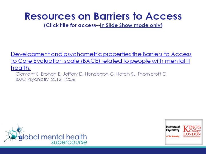 Development and psychometric properties the Barriers to Access to Care Evaluation scale (BACE) related to people with mental ill health.