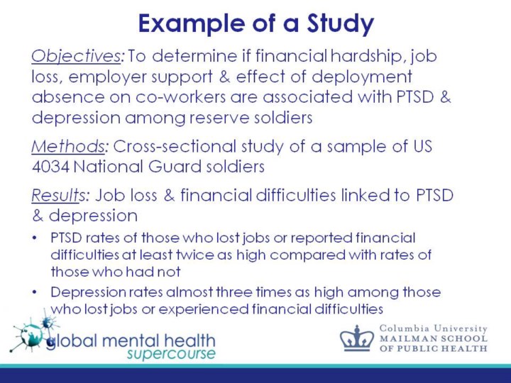 | Riviere, L. A., Kendall-Robbins, A., McGurk, D., Castro, C. A., & Hoge, C. W. (2011). Coming home may hurt: risk factors for mental ill health in US reservists after deployment in Iraq. The British Journal of Psychiatry, 198(2), 136-142.