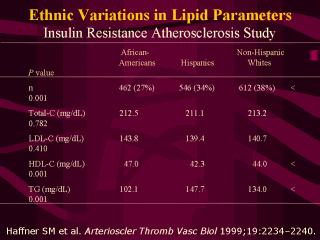 non-Hispanic whites. Reference 1. Haffner SM, D’Agostino R Jr, Goff D, et al. LDL size in African Americans, Hispanics, and non-Hispanic whites: the Insulin Resistance Atherosclerosis Study. Arterioscler Thromb Vasc Biol. 1999;19:2234–2240. |