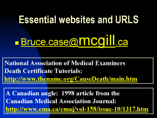 | Email address of Dr. Case, and the two web addresses for the primary sources for this lecture. Reading these and perusing the web site is essential to an understanding of the topic. |