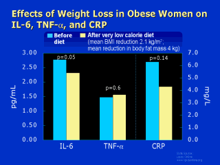 and adipose tissue mass was reduced by a mean of 3 kg. Serum IL-6 concentration was