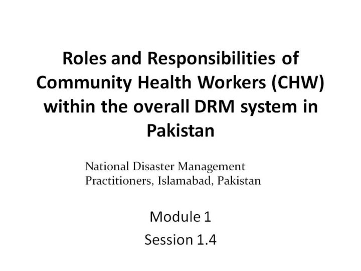 Workers (CHW) within the overall DRM system in Pakistan lecture by National