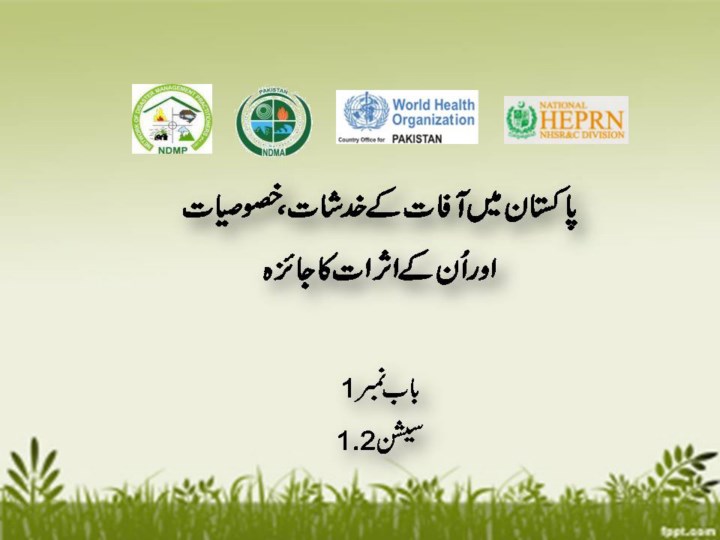 Disaster risks, characteristics and impacts in Pakistan in Urdu translated by Dr Abu Zar Taizai