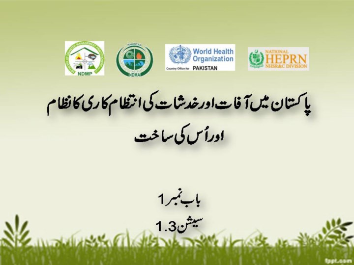Disaster Risk Management (DRM) System and Structure in Pakistan in Urdu translated by Dr Abu Zar Taizai