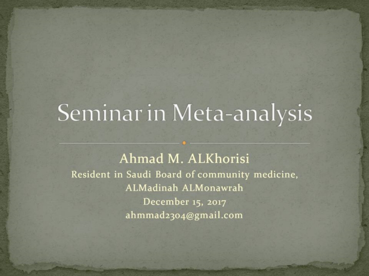 | Seminar in Meta-analysis lecture by Ahmad M.