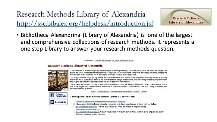 Research Methods Library of Alexandria http://ssc.bibalex.org/helpdesk/introduction.jsf
