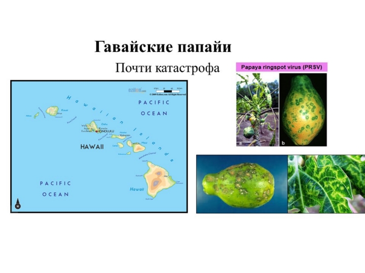 Гавайская папайя, была почти уничтожена вирусом Ring Spot. Ученые около 20 лет назад создали гавайскую папайю, устойчивую к вирусу кольцевого пятна, и теперь, если вы поедете в любую точку США и возьмете папайю, она почти наверняка является ГМО папайей. Хотя не помечена как таковая. Почему? Потому что правительство решило, что это будет слишком опасно, когда фермеры будут протестовать, и это уничтожит промышленность, связанную с папайей. Так что же сделало правительство? Они решили хорошо, раз это было сделано давно, мы будем делать вид, что это естественно, и только новые растения, нужно помечать. |