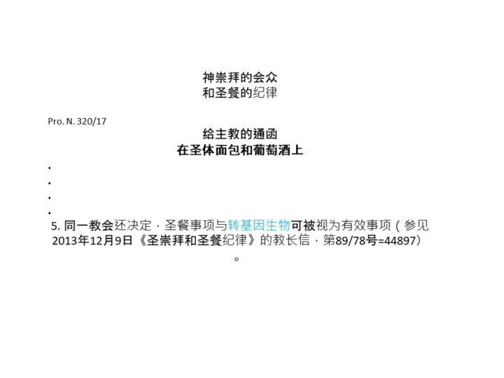 这是一件有趣的事情[RR32]......这是我到目前为止从天主教堂听到的最好的事情。梵蒂冈告诉天主教徒应该怎样做。什么可行,什么不可行。现在,他们在伟大的圣餐宴上,喝红酒,吃面包。制定这些规则的会众决定,如果是由转基因生物制成的圣餐,这是可以接受的,但如果不含麸质,则显然是行不通的。到目前为止,这是天主教做的最好的事情。