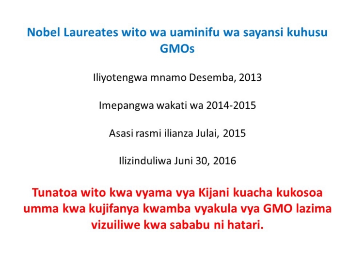 Na kwa hivyo nilianza kufikiria juu ya kampeni hii, nikaona jinsi tutakavyofanya, tukapitia, nikazungumza na marafiki wangu kadhaa wa Nobel na akasema unajua, ungeunga mkono jambo hili, ni jambo ambalo ungekuwa kwenye bodi na... na kila mtu niliyezungumza naye alisema, hii ni jambo kubwa sana ambalo tutakuwa kwenye bodi, hatupendi ukweli kwamba kuna uwongo wote huu ambao unaambiwa juu ya sayansi na sayansi inaweza kufanya nini na inawezaje kusaidia . Kwa hivyo kampeni ilizinduliwa vizuri Juni 30, 2016 na [RR4] wakati huo nilifanya mkutano wa waandishi wa habari huko Washington; tulikuwa na wanandoa wa Nobel Laureates ambao waliingia na kutoa maoni na tukafanya kile tunaweza, na tukapata idadi kubwa ya chanjo ya waandishi wa habari. Barua ilitumwa kwa Greenpeace, barua ilitumwa kwa Mkuu wa kila mjumbe wa UN huko New York na kimsingi tulichouliza ni kwanini usiache kutishia umma na hadithi hizi zote ambazo sio za kweli wakati Sayansi inasema salama kabisa, hakuna shida na hizi, hakuna shida hata moja imeibuka ambayo inaaminika. Sasa bila shaka unawasikiliza wanaharakati wa kupambana na GMO oh nao wanakuambia hadithi hizi za saratani kutoka kwa hii, saratani kutoka kwa hiyo. Hakuna hata moja ya hadithi hizi, hata ingawa baadhi yao zilichapishwa katika fasihi ya kisayansi, kwa kila kesi wakati masomo yalirudiwa au wakati kazi hiyo ilingatiwa kwa uangalifu, ilikuwa tu mbaya. Na Seralini labda ndiye adui mkubwa kama vile GMO inavyohusika na alichapisha karatasi, alisema panya wengine walipata saratani, watu waliangalia masomo na wakasema hiyo haiwezi kuwa kweli. Alikuwa hajafanya majaribio hayo vizuri, sayansi ilikuwa duni sana. Na alilazimika kufuta nakala hiyo, na jarida lilisema hatutachapisha karatasi hiyo. Kwa hivyo anafanya nini? Anaenda na kuchapisha katika jarida lingine ambalo halina hakiki ya rika. Hakuna mwanasayansi anayeangalia na kusema hii ni sawa. Ikiwa unasikiliza watu wa kupambana na GMO, oh wanakuambia hii wakati wote. Hii ni mambo mabaya kabisa ambayo mtu huyu amekuwa akifanya. Kwa hivyo, ndivyo tulianza. |