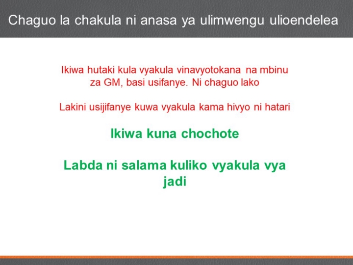 Kwa hivyo msingi wa msingi hapa [RR28] ni ikiwa hautaki kula chakula kinachotokana na njia za GM, basi usifanye. Huu ni chaguo lako. Hakuna anayekufanya kula chochote. Lakini ikiwa kuna chochote, labda ni salama kuliko vyakula vya jadi. Usiseme kuwa hautakula kwa sababu ni hatari. |