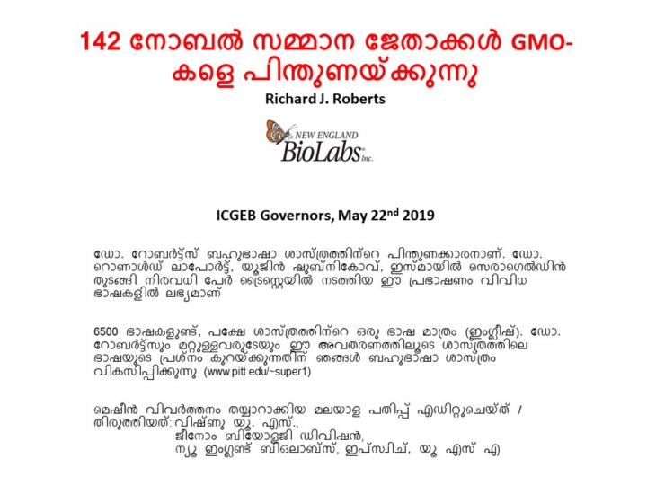 | 142 Nobel Laureates support GMOs. In Malayalam