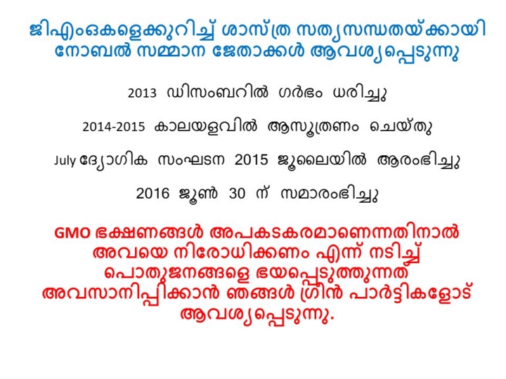 അതിനാൽ ഞാൻ ഈ കാമ്പെയ്നെക്കുറിച്ച് ചിന്തിക്കാൻ തുടങ്ങി, ഞങ്ങൾ ഇത് എങ്ങനെ ചെയ്യുമെന്ന് മനസിലാക്കി, അതിലൂടെ കടന്നുപോയി, എന്റെ നിരവധി നോബൽ സുഹൃത്തുക്കളുമായി സംസാരിച്ചു, നിങ്ങൾക്കറിയാമോ, നിങ്ങൾ ഇതിനെ പിന്തുണയ്ക്കുമോ, ഇത് നിങ്ങൾ കപ്പലിൽ ഉണ്ടായിരിക്കുമോ… ഞാൻ സംസാരിച്ച എല്ലാവരും അതെ എന്ന് പറഞ്ഞു, ഇത് ഞങ്ങൾ കപ്പലിൽ ഉണ്ടായിരിക്കേണ്ട ഒന്നാണ്, ഈ നുണകളെല്ലാം ശാസ്ത്രത്തെക്കുറിച്ച് പറയപ്പെടുന്നുണ്ടെന്നും ശാസ്ത്രത്തിന് എന്തുചെയ്യാൻ കഴിയുമെന്നും അത് എങ്ങനെ സഹായിക്കാമെന്നും ഞങ്ങൾ ഇഷ്ടപ്പെടുന്നില്ല . അതിനാൽ കാമ്പെയ്ൻ ശരിയായി ആരംഭിച്ചത് 2016 ജൂൺ 30, [RR4] അക്കാലത്ത് ഞാൻ വാഷിംഗ്ടണിൽ ഒരു പത്രസമ്മേളനം നടത്തി; ഞങ്ങൾക്ക് രണ്ട് നോബൽ സമ്മാന ജേതാക്കൾ ഉണ്ടായിരുന്നു, അവർ ചില അഭിപ്രായങ്ങൾ പ്രകടിപ്പിക്കുകയും ഞങ്ങൾക്ക് കഴിയുന്നത് ഞങ്ങൾ ചെയ്യുകയും ചെയ്തു, അതിനുശേഷം ഞങ്ങൾക്ക് ധാരാളം മാധ്യമങ്ങൾ ലഭിച്ചു. ഗ്രീൻപീസിലേക്ക് ഒരു കത്ത് അയച്ചു, ന്യൂയോർക്കിലെ ഓരോ യുഎൻ പ്രതിനിധി സംഘത്തിനും ഒരു കത്ത് അയച്ചിട്ടുണ്ട്, അടിസ്ഥാനപരമായി ഞങ്ങൾ ചോദിച്ചത്, ശാസ്ത്രം പറയുമ്പോൾ ശരിയല്ലാത്ത ഈ കഥകളെല്ലാം ഉപയോഗിച്ച് പൊതുജനങ്ങളെ ഭയപ്പെടുത്തുന്നത് എന്തുകൊണ്ട്? തികച്ചും സുരക്ഷിതമാണ്, ഇവയിൽ ഒരു പ്രശ്നവുമില്ല, വിശ്വസനീയമായ ഒരു പ്രശ്നവും ഉയർന്നുവന്നിട്ടില്ല. ഇപ്പോൾ തീർച്ചയായും നിങ്ങൾ GMO വിരുദ്ധ പ്രവർത്തകരെ ശ്രദ്ധിക്കുന്നു, അവർ നിങ്ങളോട് ഈ കാൻസറിന്റെ കഥകൾ പറയുന്നു, അതിൽ നിന്നുള്ള കാൻസർ. ഈ കഥകളിലൊന്ന് പോലും അവയിൽ ചിലത് ശാസ്ത്രസാഹിത്യത്തിൽ പ്രസിദ്ധീകരിച്ചിട്ടുണ്ടെങ്കിലും, ഓരോ കേസിലും പഠനങ്ങൾ ആവർത്തിക്കുമ്പോഴോ അല്ലെങ്കിൽ കൃതി ശ്രദ്ധാപൂർവ്വം പരിശോധിക്കുമ്പോഴോ അത് തെറ്റാണ്. ജിഎംഒമാരെ സംബന്ധിച്ചിടത്തോളം സെറാലിനി ഒരുപക്ഷേ ശത്രുവായിരിക്കാം, അദ്ദേഹം ഒരു പ്രബന്ധം പ്രസിദ്ധീകരിച്ചു, ചില എലികൾക്ക് അർബുദം പിടിപെട്ടിട്ടുണ്ടെന്നും ആളുകൾ പഠനങ്ങൾ നോക്കിയെന്നും അത് ശരിയായിരിക്കില്ലെന്നും പറഞ്ഞു. അദ്ദേഹം പരീക്ഷണങ്ങൾ ശരിയായി നടത്തിയിട്ടില്ല, ശാസ്ത്രം വളരെ മോശമായിരുന്നു. പേപ്പർ പിൻവലിക്കാൻ അദ്ദേഹത്തെ നിർബന്ധിതനാക്കി, ഞങ്ങൾ പേപ്പർ പ്രസിദ്ധീകരിക്കില്ലെന്ന് ജേണൽ പറഞ്ഞു. അപ്പോൾ അവൻ എന്താണ് ചെയ്യുന്നത്? പിയർ റിവ്യൂ ഇല്ലാത്ത മറ്റൊരു ജേണലിൽ അദ്ദേഹം പോയി പ്രസിദ്ധീകരിക്കുന്നു. ഒരു ശാസ്ത്രജ്ഞനും നോക്കി ഇത് കുഴപ്പമില്ലെന്ന് പറയുന്നു. നിങ്ങൾ GMO വിരുദ്ധരായ ആളുകളെ ശ്രദ്ധിക്കുകയാണെങ്കിൽ, ഓ, ഇത് എല്ലായ്പ്പോഴും നിങ്ങളോട് പറയും. ഇത് തികച്ചും ഭയാനകമായ കാര്യമാണ്. അതിനാൽ, അങ്ങനെയാണ് ഞങ്ങൾ ആരംഭിച്ചത്. |