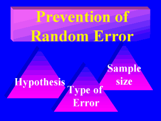 | Prevention of random error before initiating the study resides in succeeding to choose a sample representative of the entire population. This includes definition of the question understudy, identification of the types of random error and determination of the appropriate sample size. |