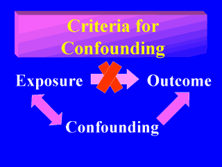 | The confounding factor must be associated with the exposure. The confounder, independent of the exposure, is a risk factor for the outcome. The observed relationship between the exposure and outcome can be attributed totally or in part to the effect of the confounder. |