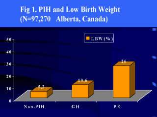 | This figure shows that incidence of low birth weight is markedly higher in women with preeclampsia (PE) than in women with gestational hypertension (GH) and in women without pregnancy-induced hypertension (PIH). |