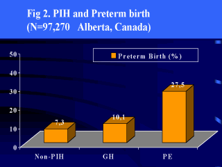 gestational hypertension (GH) and in women without pregnancy-induced hypertension (PIH). Mothers who have preeclampsia often have smaller babies. This is partly due to preterm birth or shortened gestational duration since early delivery is a consequence and the only effective treatment of preeclampsia. |